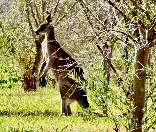 Roos hop with the assistance of their tails. Unlike koalas, roos are often seen as pests.